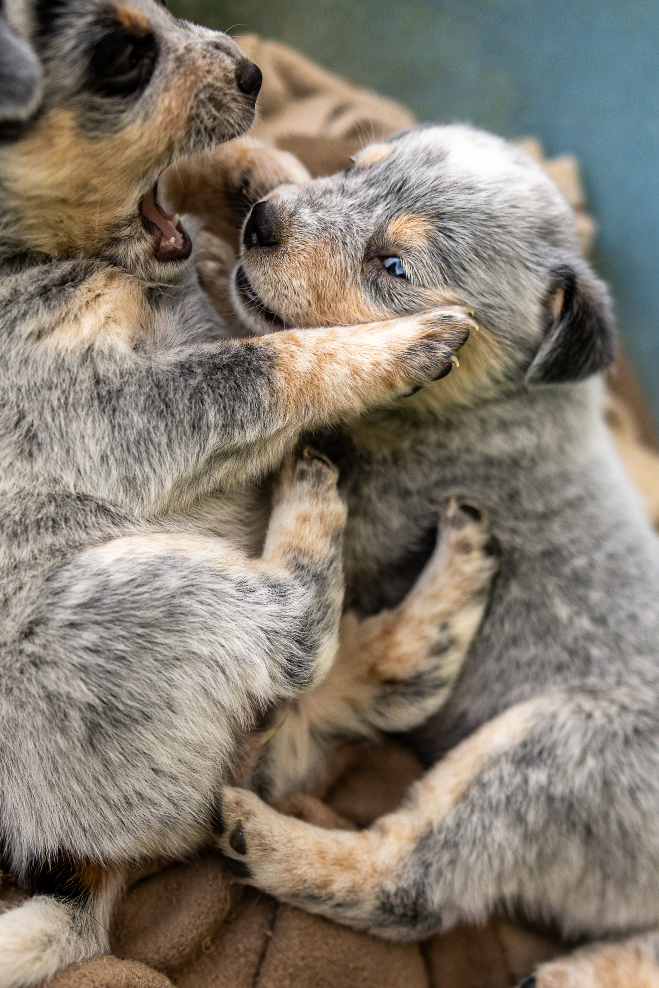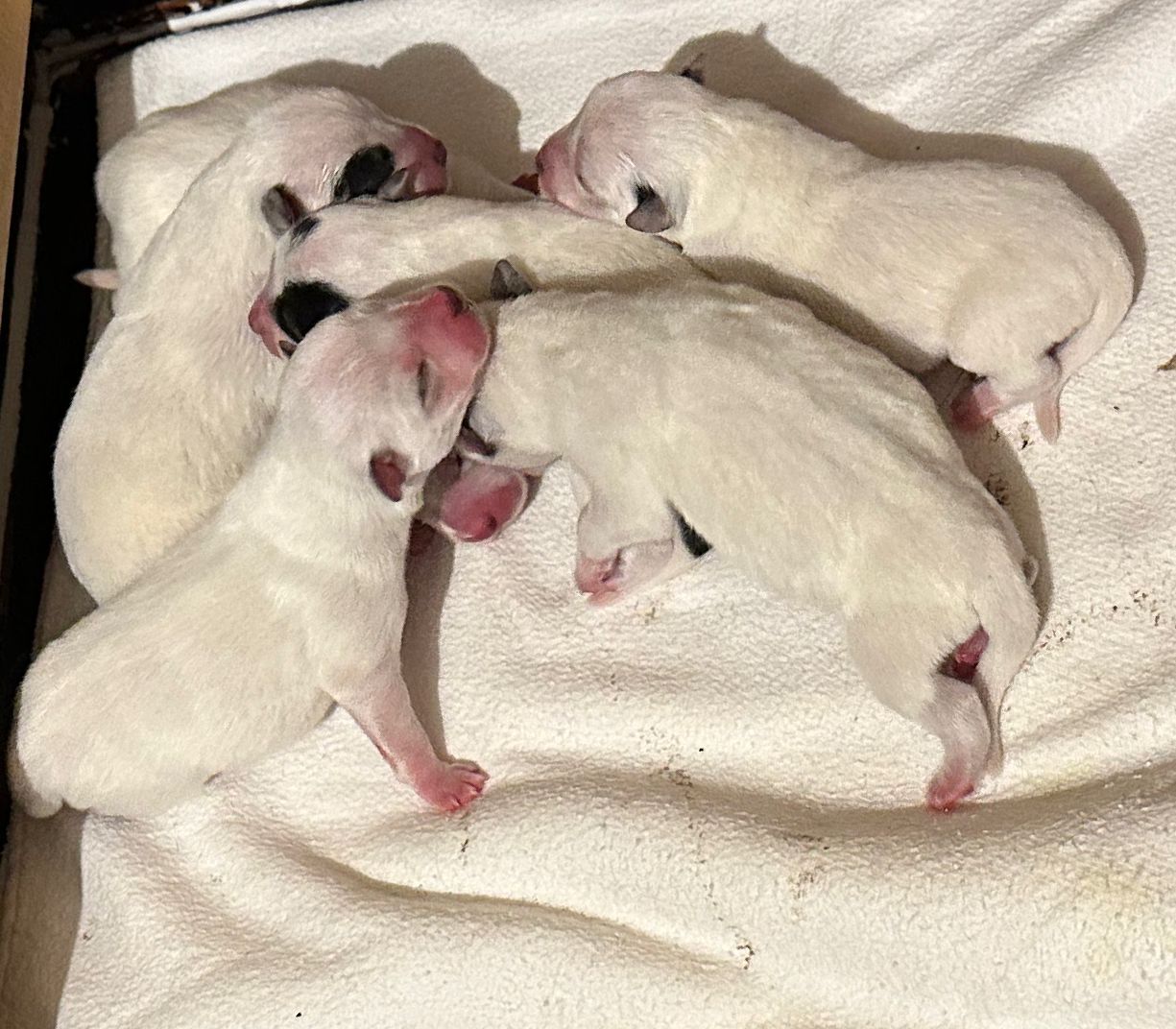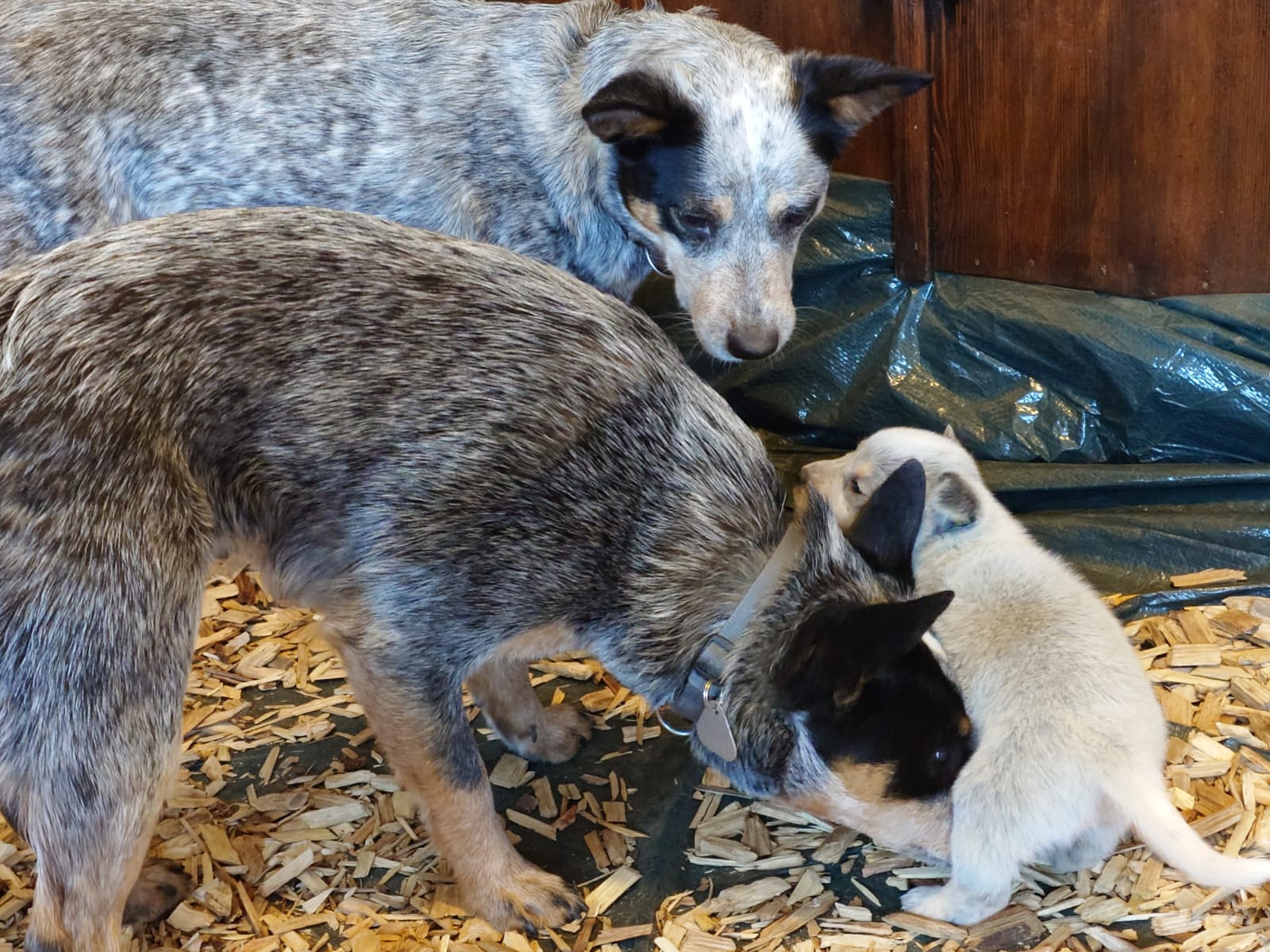 In den frühen Morgenstunden des 01.02.2026 hat Fenves innerhalb von 4 Stunden 6 kleine Cattledog-Mädels zur Welt gebracht. Die Geburtsgewichte lagen zwischen 207g und 307g. Alle Welpen sind putzfit und Fenves versorgt sie liebevoll.